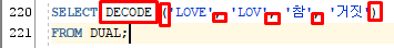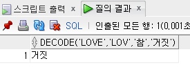DECODE ('LOVE', 'LOV', '참', '거짓')