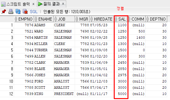 ORDER BY 컬럼명 ASC;