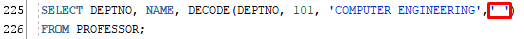 SELECT DEPTNO, NAME, DECODE(DEPTNO, 101, 'COMPUTER ENGINEERING',' ')