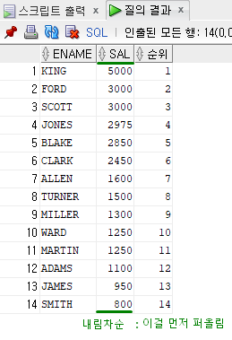 월급 순위 구하기