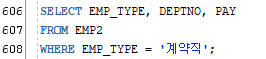이렇게 세로로 보기 좋게 생긴 데이터들을 가로로 만들어보기~! 컬렴명들은 부서번호로