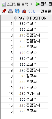 컬럼명에 POSITION 값들을 가로로 올려서 보기 편하게 하는 기능!!