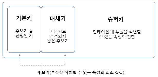 대체키 : 기본키로 선정되지 않은 후보키