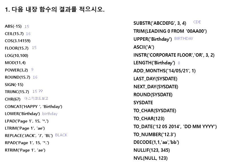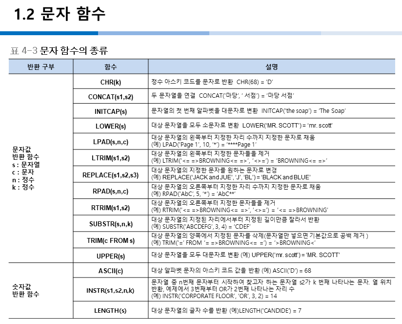 숫자함수보다 문자함수 더 쓰임.