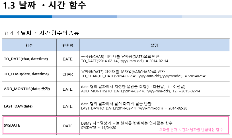 날짜를 VARCHAR2타입 말고 DATE타입을 꼭 사용해야 하는 이유는 예를 들어 3월 31일 하루 더하면 4월 1일이 되어야하는데 VARCHAR2타입으로 하면 3월 32일이 된다. 그럼 할일이 많아지기 때문에 꼭 DATE 타입으로 해야한다!!