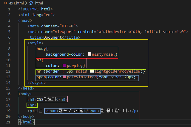<h3>CSS맛보기</h3>