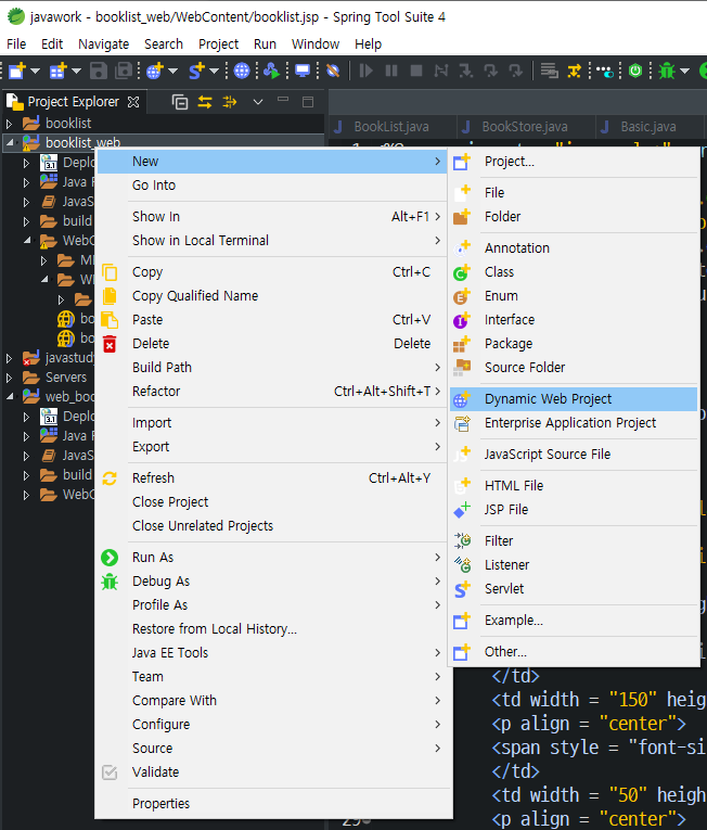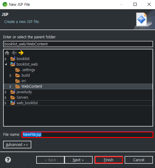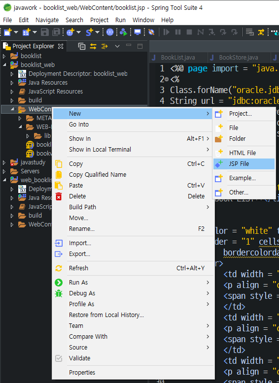 jsp파일 만들기 : booklist_web 생성