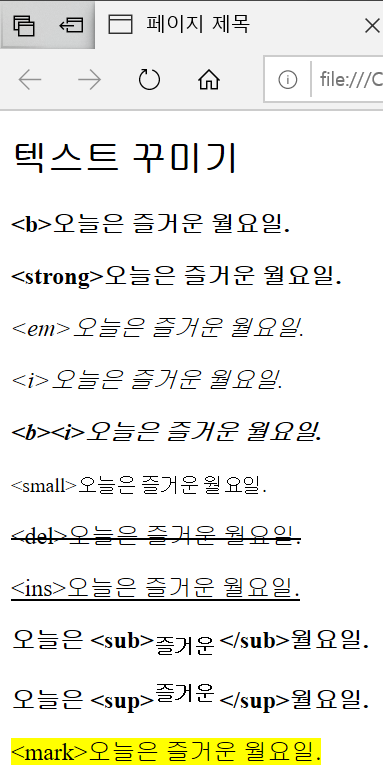 태그 중첩 가능 <b><i>진하게 이테릭체