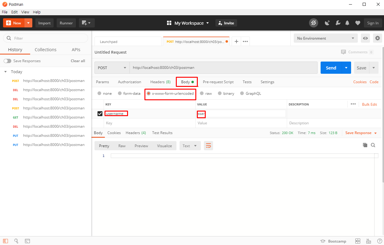 글자 request, response객체에 데이터 담김.