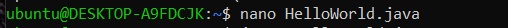 2. nano Helloworld.java (나노 들어가기) 다 작성하면 빠져나올때 Ctrl + X 저장하고 나가기
