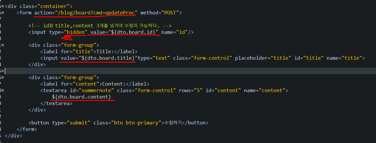 board의 id를 넘겨서 수정하기 때문에