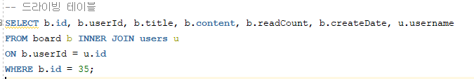 SELECT b.userid, b,title, b.content, b.readme, b.readCount, b.createDate, u.u