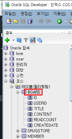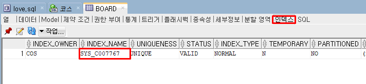 인덱스 명이 궁금하면 아래와 같이 테이블에 인덱스에서 볼 수 있다.