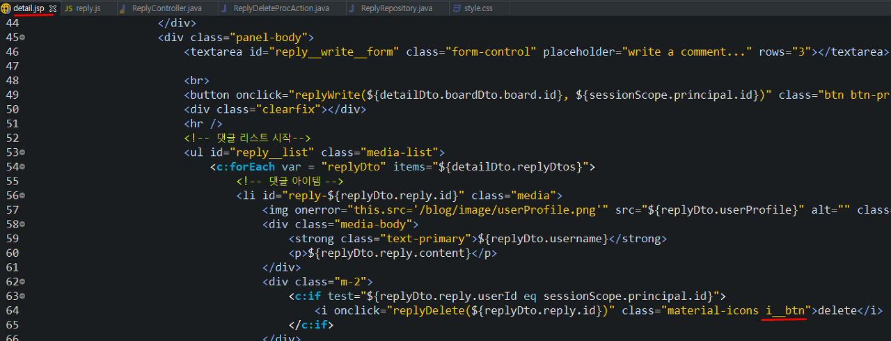 댓글 작성하고 새로 갱신될때 아이디값이 없고,