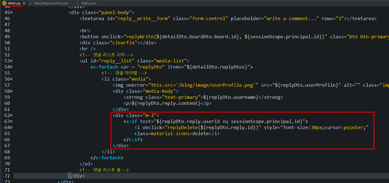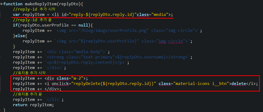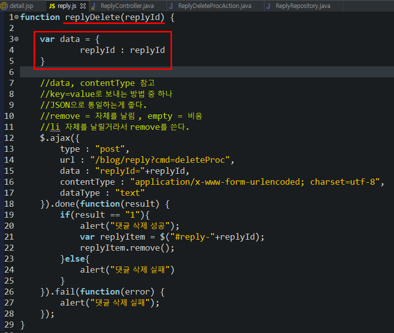 댓글을 삭제할때 id값을 찾아서 삭제한다.