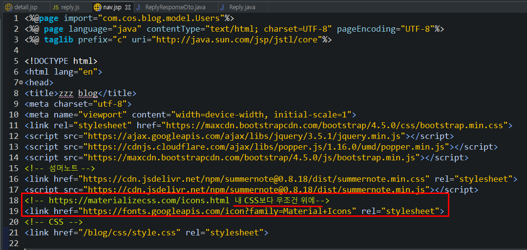 주의 cmd를 nav.jsp안에 내 스타일.css위에 넣어요.