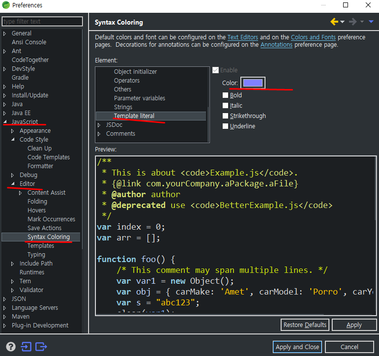 백틱안에 내용이 더러운 남색으로 적용되어서 눈에 보이지를 않는다.