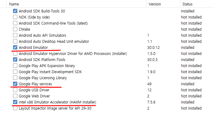 에뮬레이터 실행되기 위해서는 3개가 필수이다.