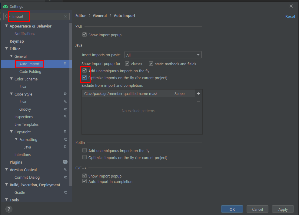 지우면 import도 바로 사라짐