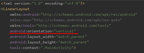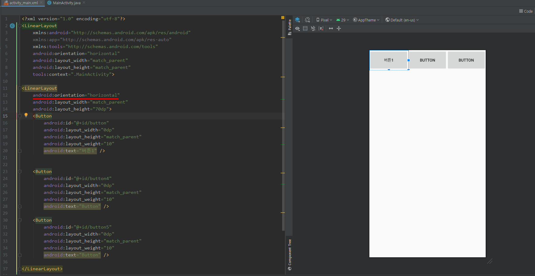 리니어 레이아웃 속성 android:orientation="horizontal"이 기본값니다.