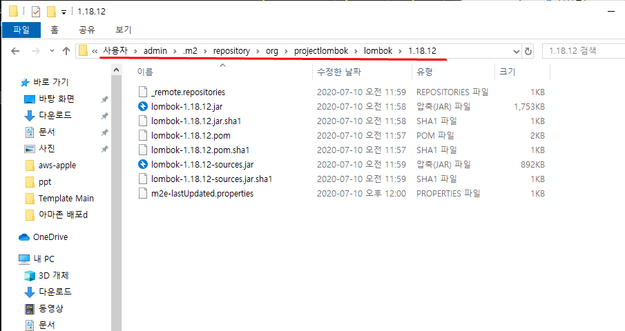 아래와 같이 다운받아 가지고 있는 lombok을 볼 수 있어요.