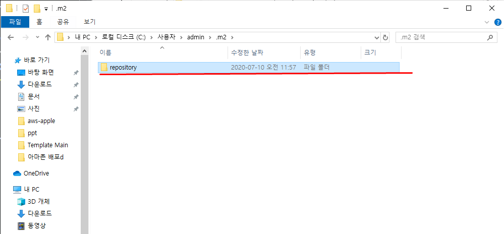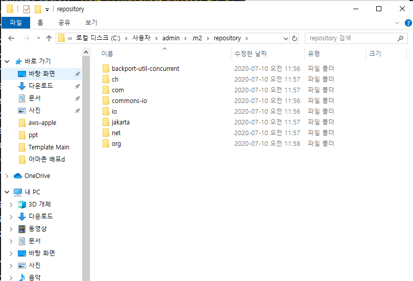 메이븐에서 관리하는 라이브러리들 모아놓는 폴더이다.