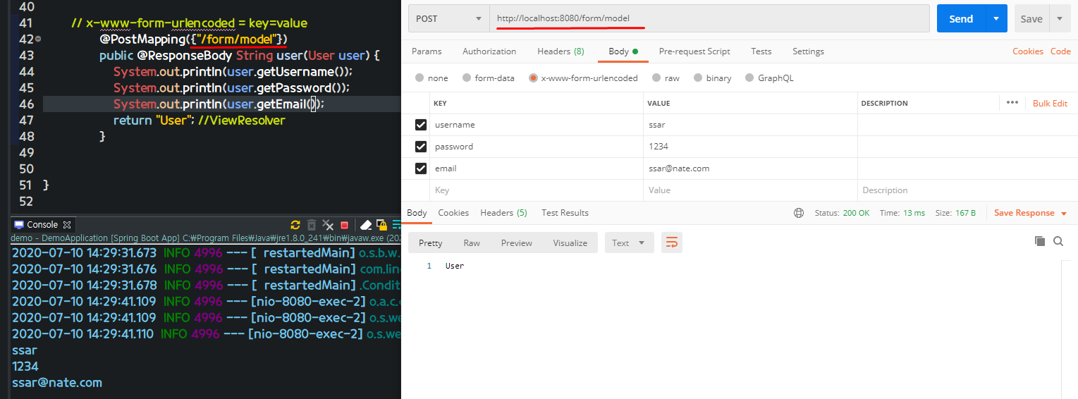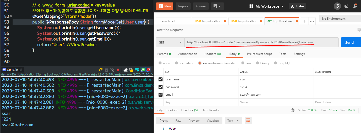 특수한 경우에 key=value로 달라고 하면 리턴에다가 "username="+user.getUsername()+"&"...으로 가능