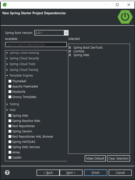 Spring Web 체크 : 컨트롤러 만들려면 체크!!