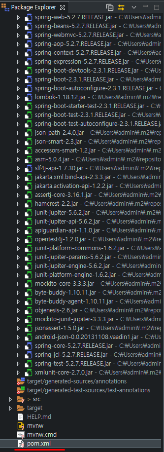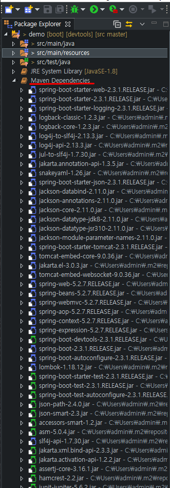무거워요. 그러니까 기본으로 다 있는 거 아니고 내가 maven 에서 받아요. 받은 것들이 여기에 있어요.