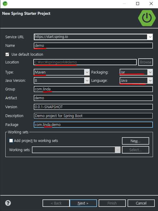 com.linda.demo라는 처음 만든 패키지가 있어요.