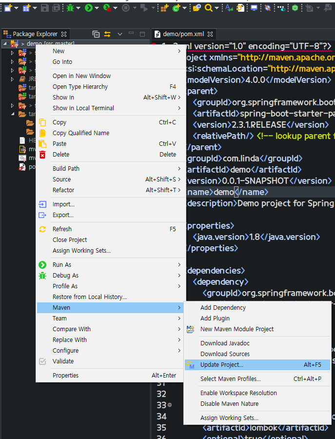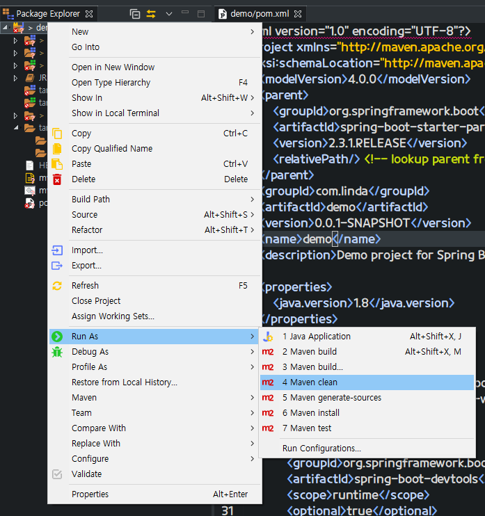 한번더 말하자면 maven clean하면 target 디렉토리 삭제