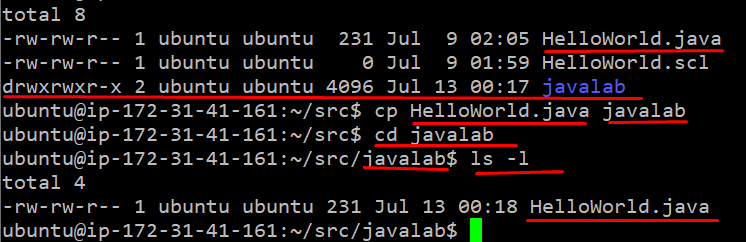cp /home/ubuntu/src/HelloWorld.java javalab