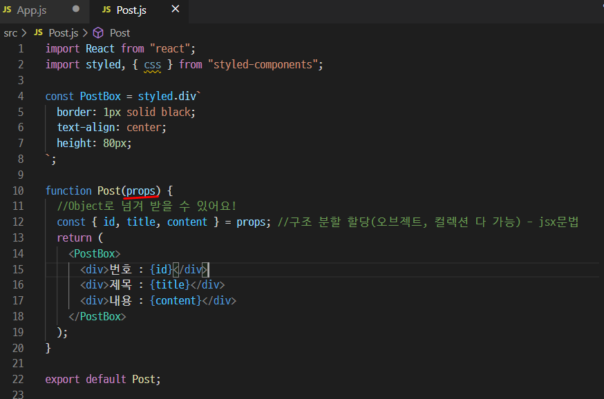 props를 쓰면 만들지 않아도 된다. -> 매우 좋은것