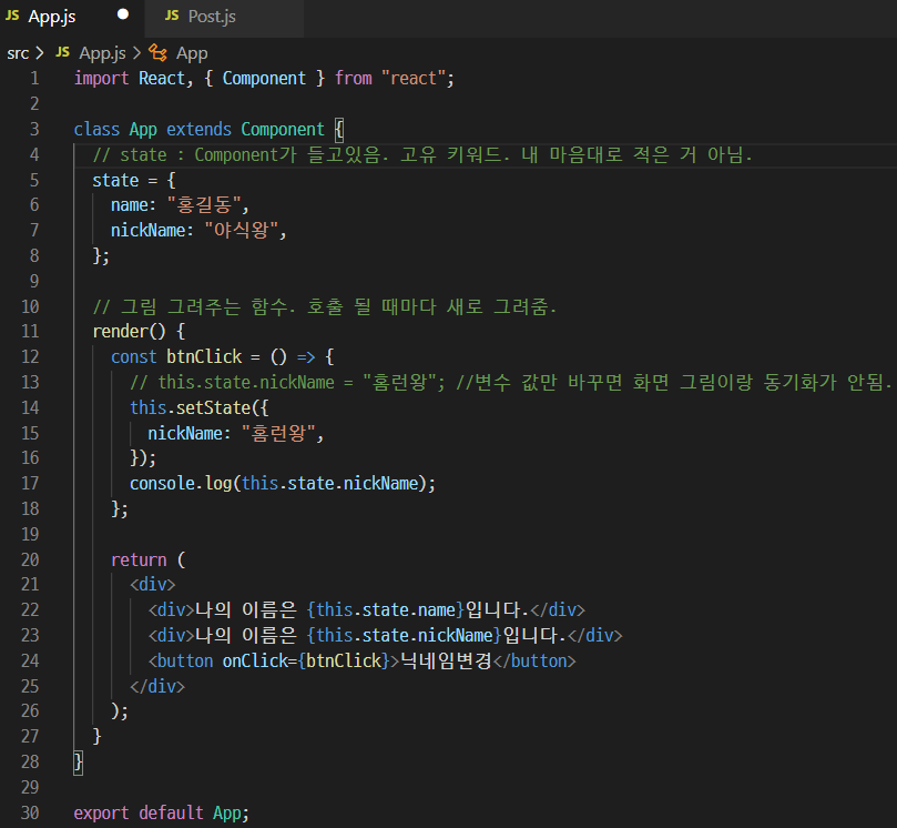 function 컴포넌트에서는 state사용 할 수 없어요. 클래스에서! 합니다.