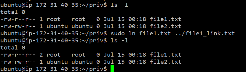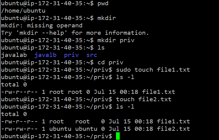 sudo를 안걸고 만들면 사용자(ubuntu) 권한으로 만들어진다.