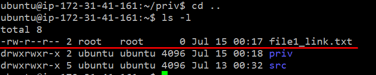 file1.txt의 소유권이 root한테 있다는 걸 볼 수 있다.