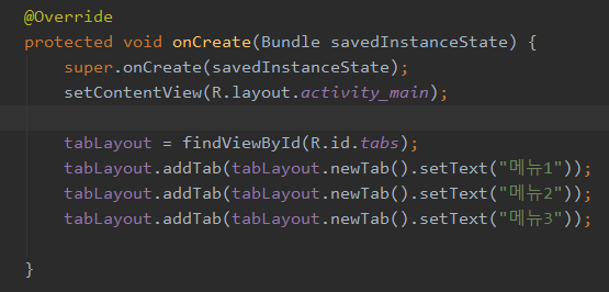 TabItem들은 아래와 같이 자바코드로 가능