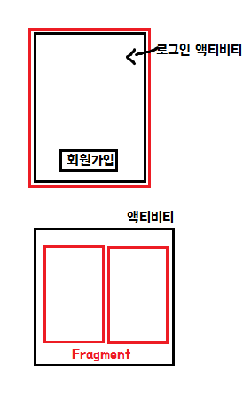 1 로그인 Activity 화면 위에 2 회원가입 Activity화면을 올립니다.