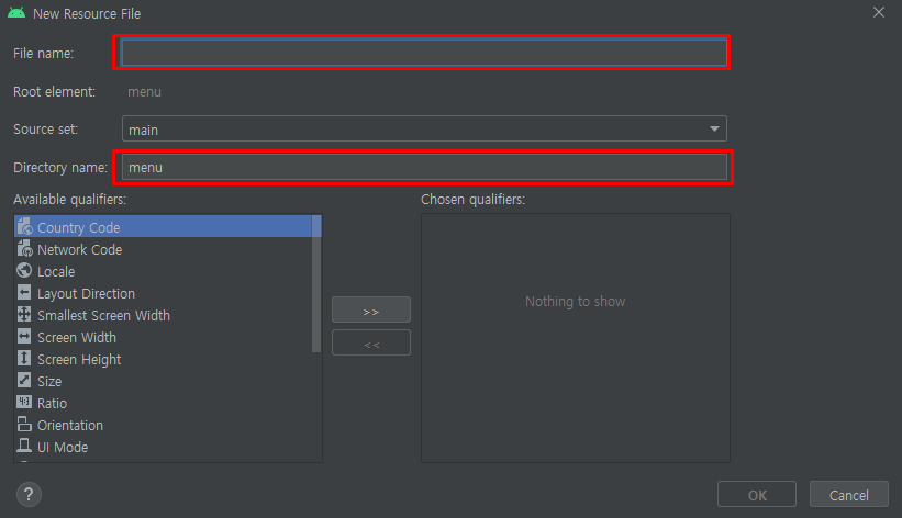 Directory name은 안드로이드에 정해주는것이니 따라야한다.