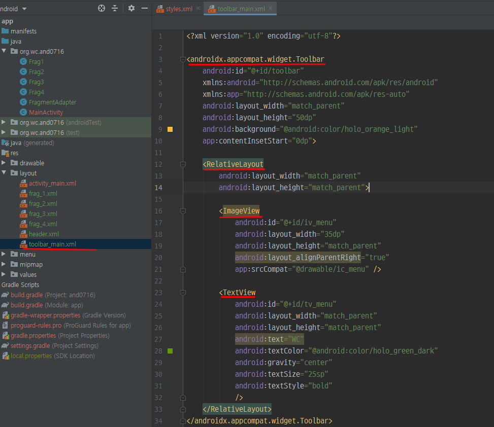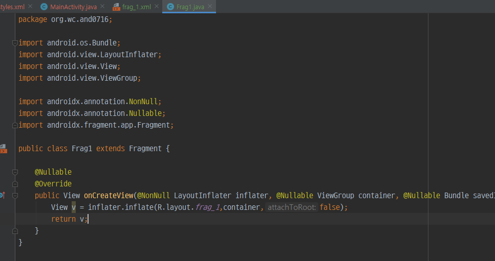 각각의 Frag XML을 만들어주고 그것을 생성할 class도 만들어줘야한다.