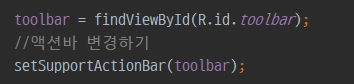 안드로이드에서 기본으로 툴바를 제공하기 때문에 설정을 해줘야 툴바로 인식한다.