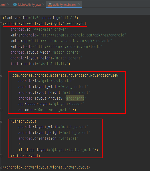 activity_main에서 material에서 가져온 navnavigation을 가져 올 예정이며
