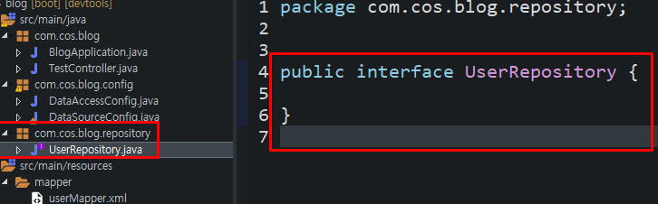 위의 UserRepository는 DataAccessConfig에서 MapperScan을 해놔서