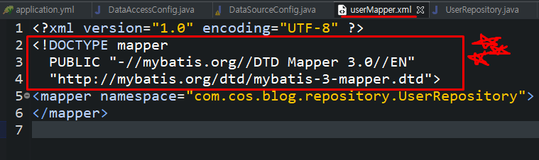 <mapper namespace="com.cos.blog.repository.UserRepository">