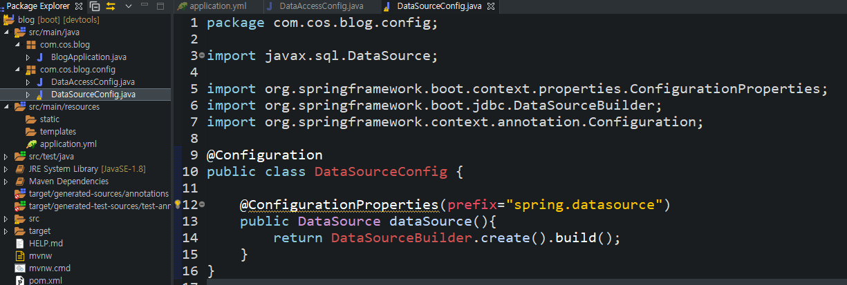 DataSourceConfig.java (참고 : yml설정을 참고)