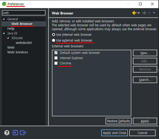 자바 이클립스 브라우저 설정