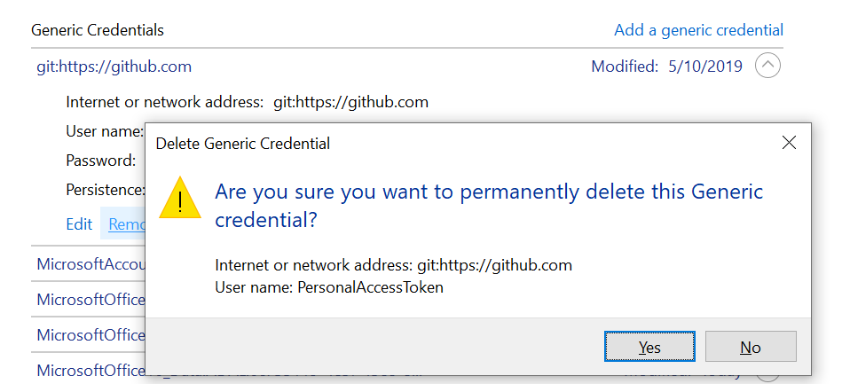 Step 4: Under Generic Credentials click on github