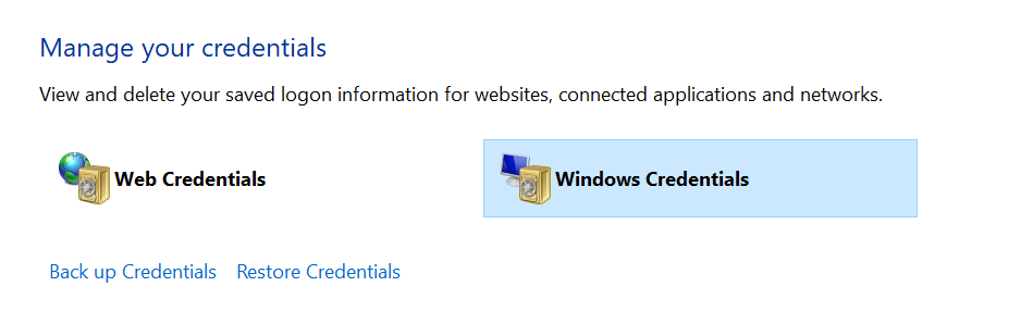Step 3: Click on Windows Credentials under Manage your credentials page