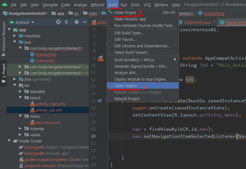 | 화면전환 - onNavigationItemSelected + 코드 나눠서 정리 (0) | 2020.07.22 |