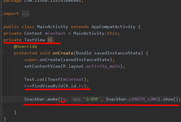 snackbar은 구글 머터리얼 gradle에 implementation해서 사용 할 수 있다. (싱크하고)